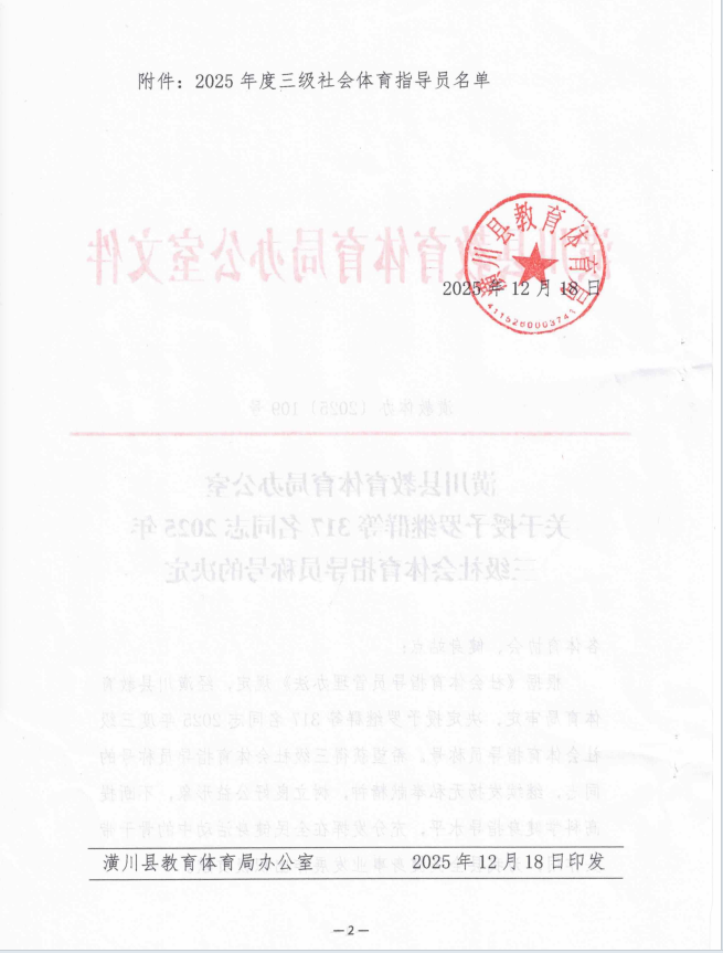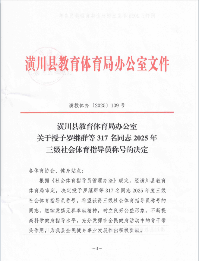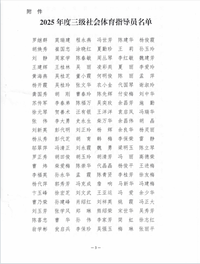潢川县教育体育局办公室 关于授予罗继群等917名同志2025年 三级社会体育指导员称号的决定